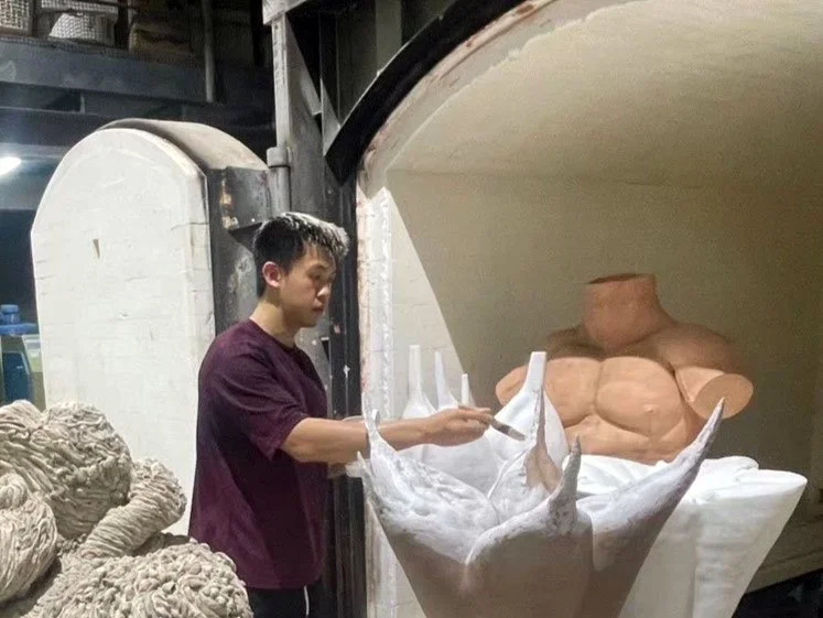 Taiwanese artist Guo Jhen Luo graduated from the Graduate Institute of Applied Arts, Department of Ceramics, at Tainan National University of the Arts. He has served as an instructor for wood firing and raku workshops. Guo Jhen’s creations stem from his own bodily experiences, leading him to explore the body as a vessel of memory and its multiple layers of meaning. When the body ceases to symbolize wholeness and instead becomes a space of absence marked by memory and scars, the viewer’s perspective is also redefined. The body thus becomes an object to be observed, preserved, and imagined—prompting viewers, through uncertain experiences, to respond ethically to fragmented and speechless forms.