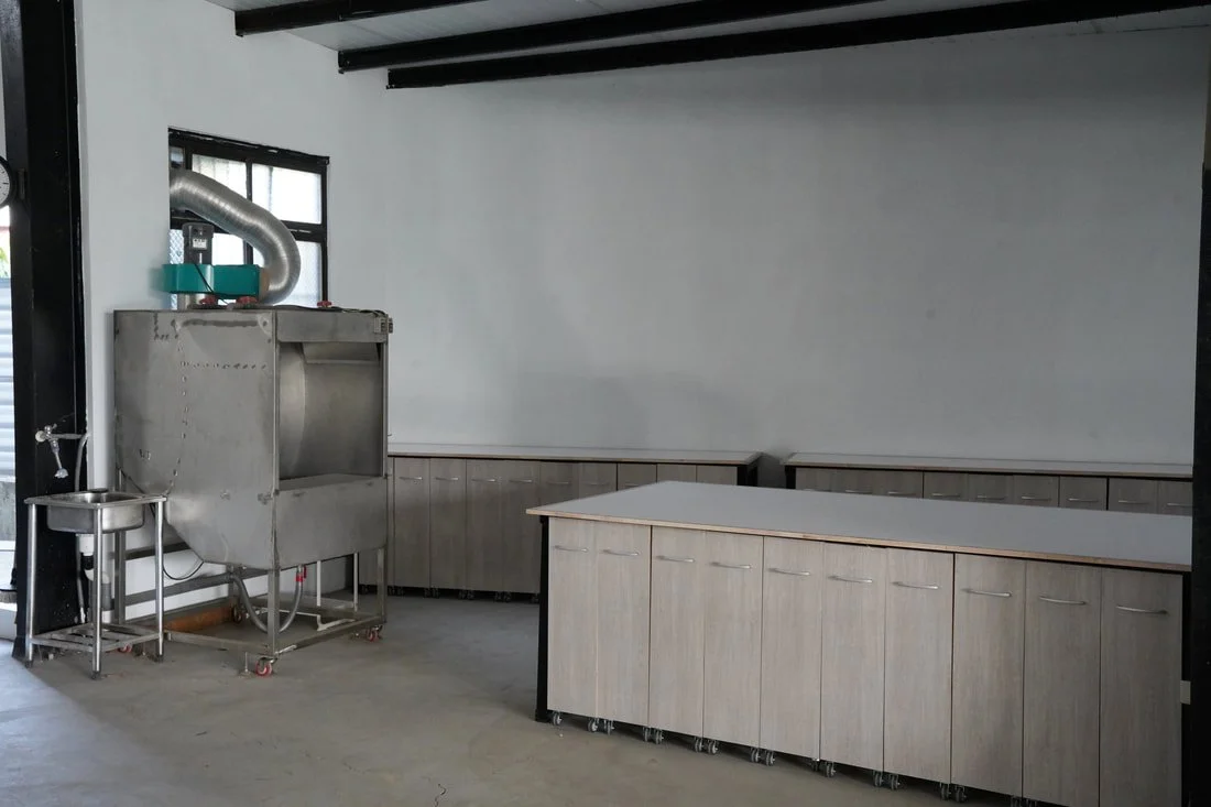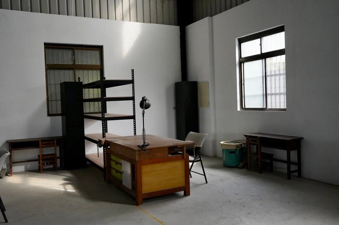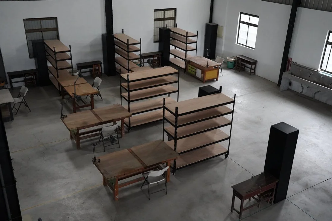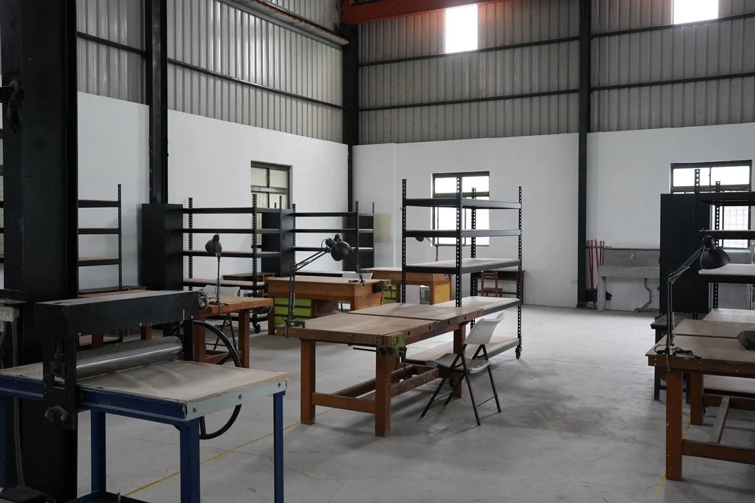 Our workshop facilities consists of a personal workspace area, kiln room, glaze room, material storage and a woodworking area.
